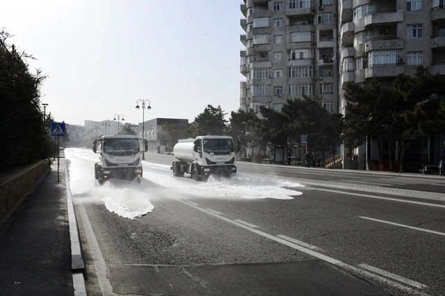 Bakı Şəhər İcra Hakimiyyətinin Mətbuat Xidmətindən Bizim.Media-ya verilən məlumata görə, səhər saatlarından etibarən Bakı Şəhər İcra Hakimiyyətinin kommunal təsərrüfat xidmətlərinin texnikası tərəfindən şəhərin 555 əsas küçə, prospekt və məhəllədaxili yolların yuyucu maddələrlə yuyulması təmin edilib.
