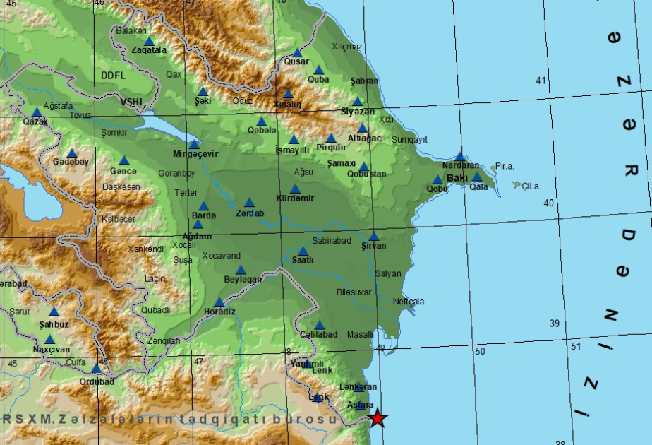 Astara stansiyasından 13 km cənub-şərqdə, Xəzər dənizində zəlzələ qeydə alınıb.