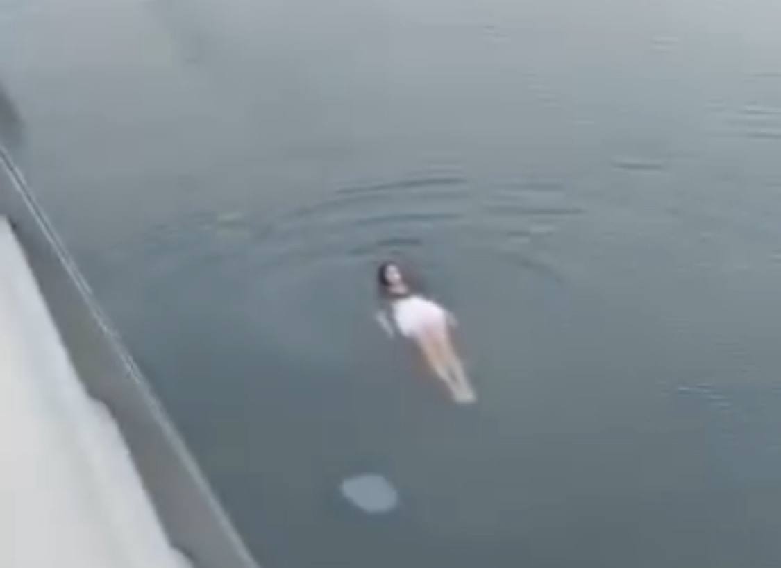 Kimliyi naməlum qadın əynində paltarla suya girərək üzməyə başlayıb.