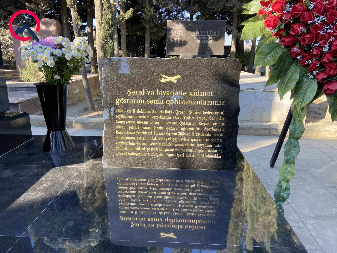 AZAL təyyarəsinin qəzaya uğraması nəticəsində həlak olan Milli Qəhrəmanlar - İqor İvanoviç Kşnyakin, Aleksandr Georgiyeviç Kalyaninov və Hökumə Cəlil qızı Əliyevanın xatirələri əbədiləşdirilib.