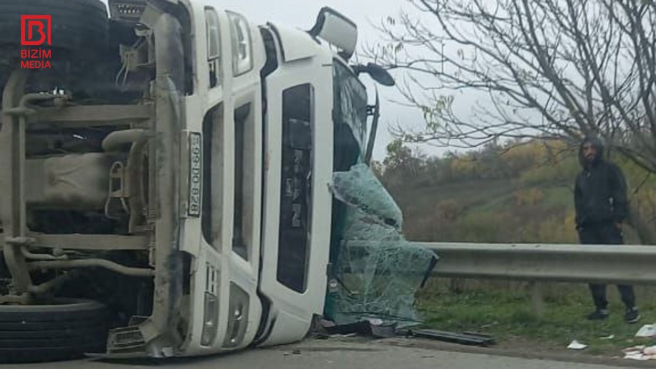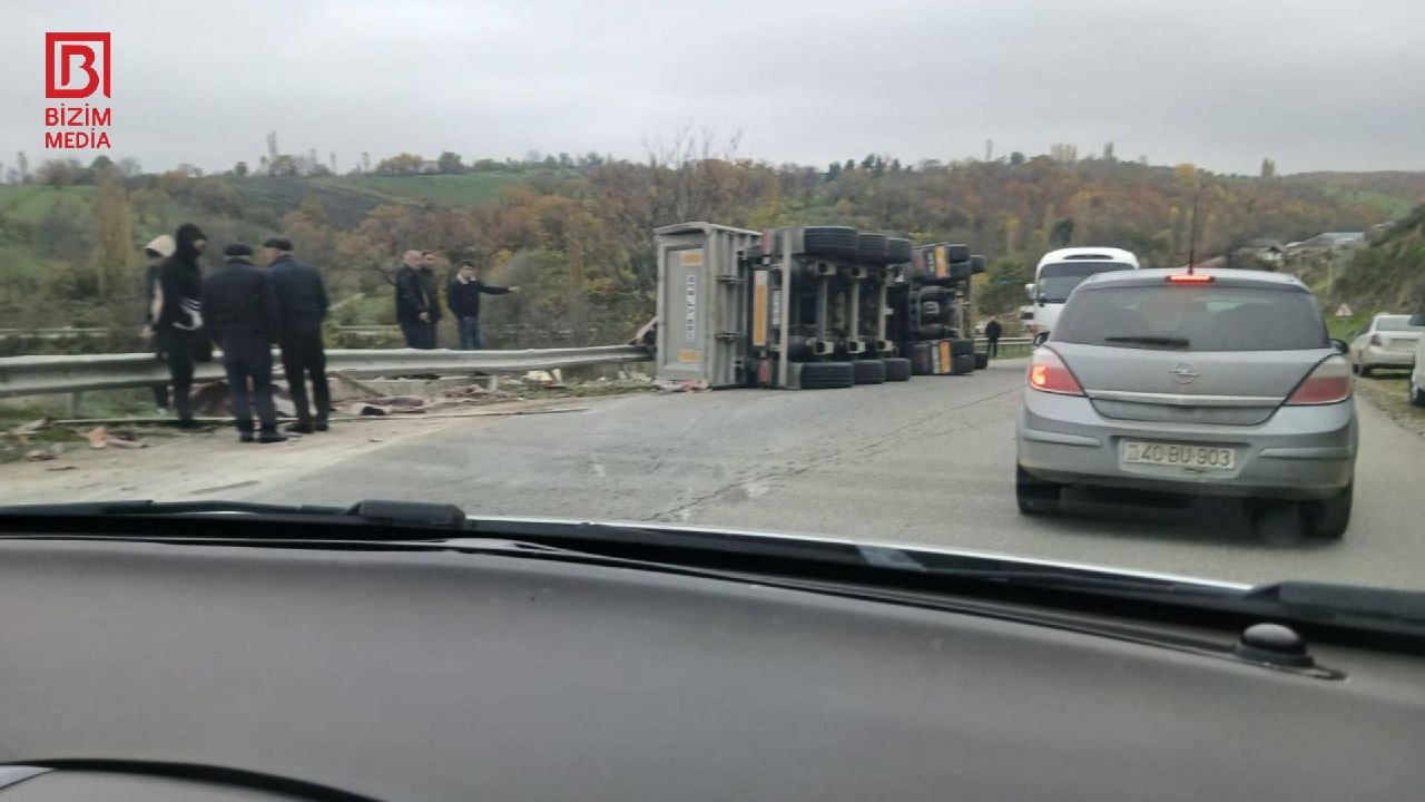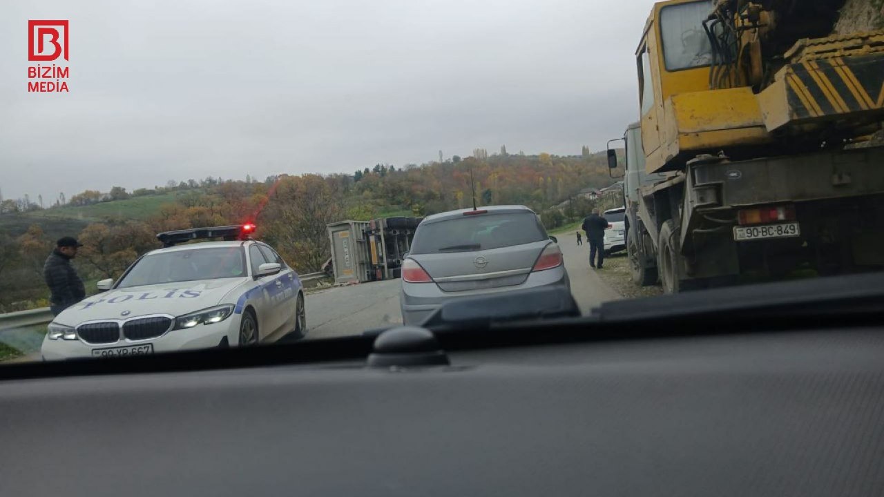 Quba-Qusar yolunun Qubanın Digah kəndindən keçən hissəsində yük avtomobili aşıb.