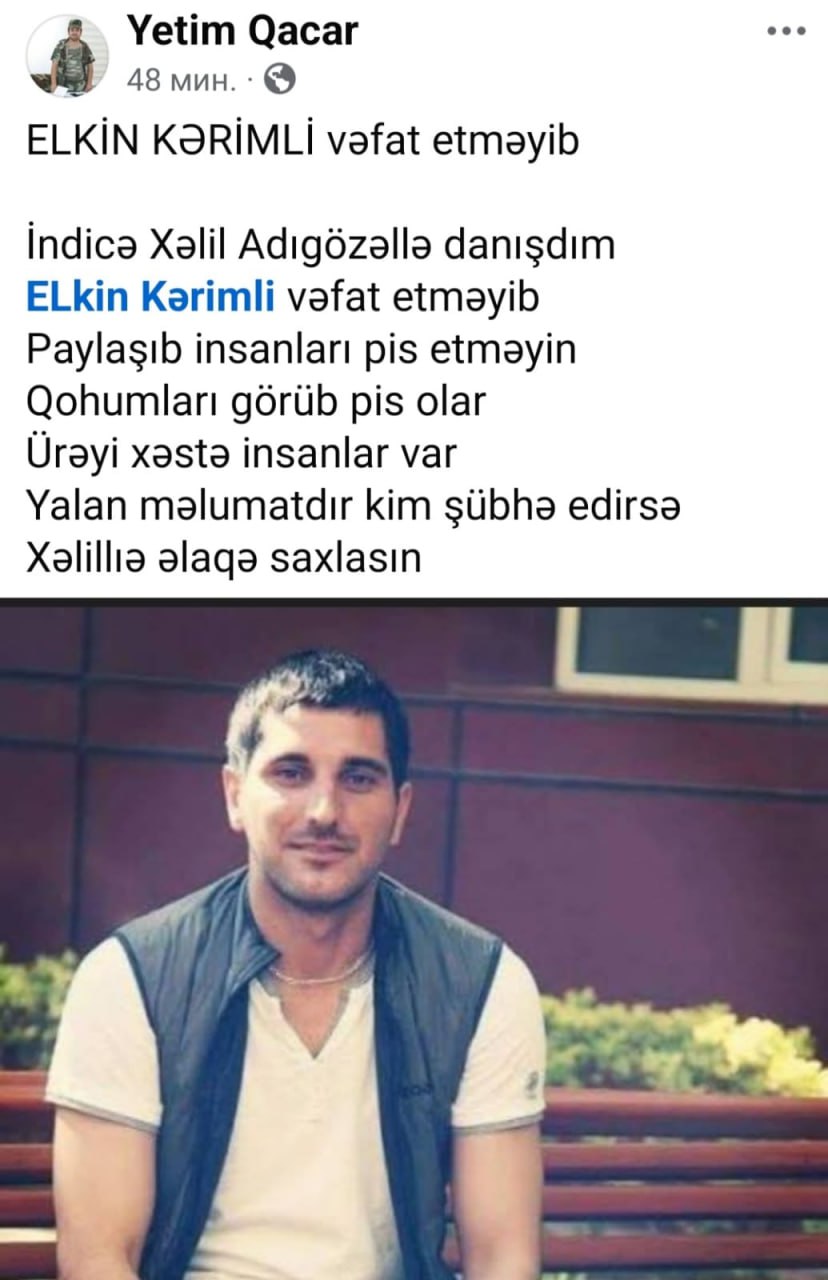 Məlumatı dəqiqləşdirmək üçün şairin özü ilə danışdıq. O, qeyd edib ki, Elkinin sağ olduğu xəbərini ona yaxın dostu və qonşu kənddən olan Xəlil Adıgözəl verib.