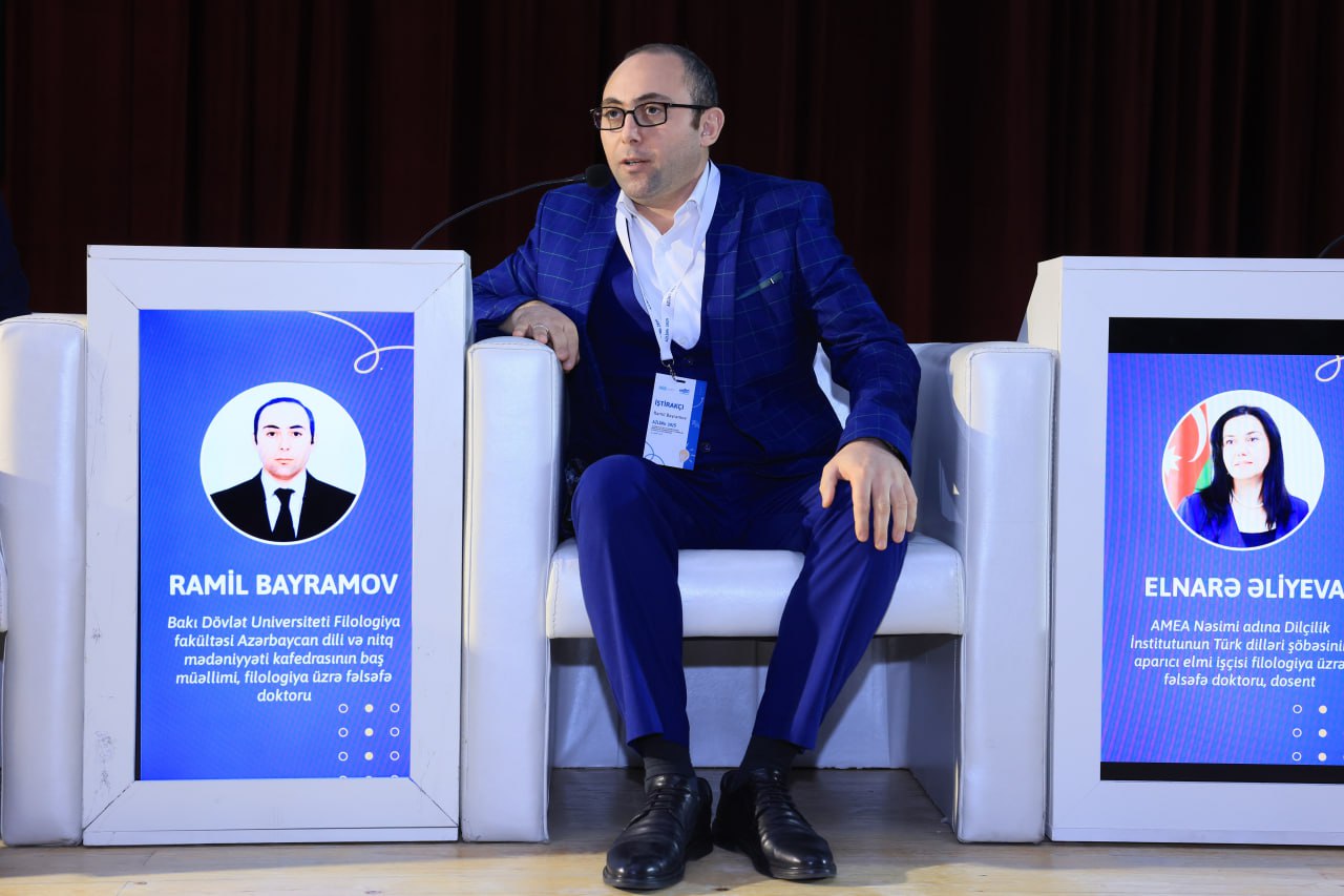 “Gənc dilçilər“ forumunda AMEA-nın Nəsimi adına Dilçilik İnstitutunun aparıcı elmi işçisi, filologiya üzrə fəlsəfə doktoru, dosent Elnarə Əliyeva, Azərbaycan Dillər Universitetini baş müəllimi, Bakı Dövlət Universitetinin baş müəllimi, filologiya üzrə fəlsəfə doktoru Ramil Bayramov, Bakı Dövlət Universitetinin doktorantı Simnar Əlizadə çıxış edərək Ümummilli Lider Heydər Əliyevin dil siyasətinin müasir Azərbaycan dilinə təsiri, Azərbaycan dilçiliyinin son nailiyyətləri, dilimizin saflığının qorunması yönündə həyata keçirilən islahatlar haqqında fikirlərini auditoriya ilə bölüşüblər.