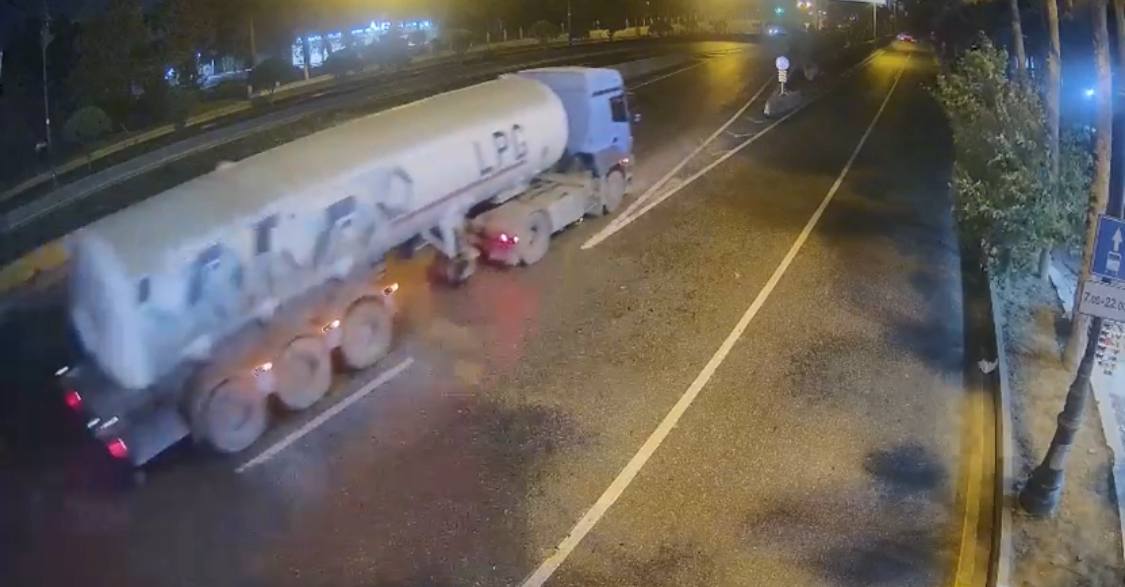 DİN Nəqliyyatı İntelektual İdarəetmə Mərkəzi Bakıda maye qaz daşıyan yük avtomobilinin törətdiyi qəzanın görüntüləri yayıb.