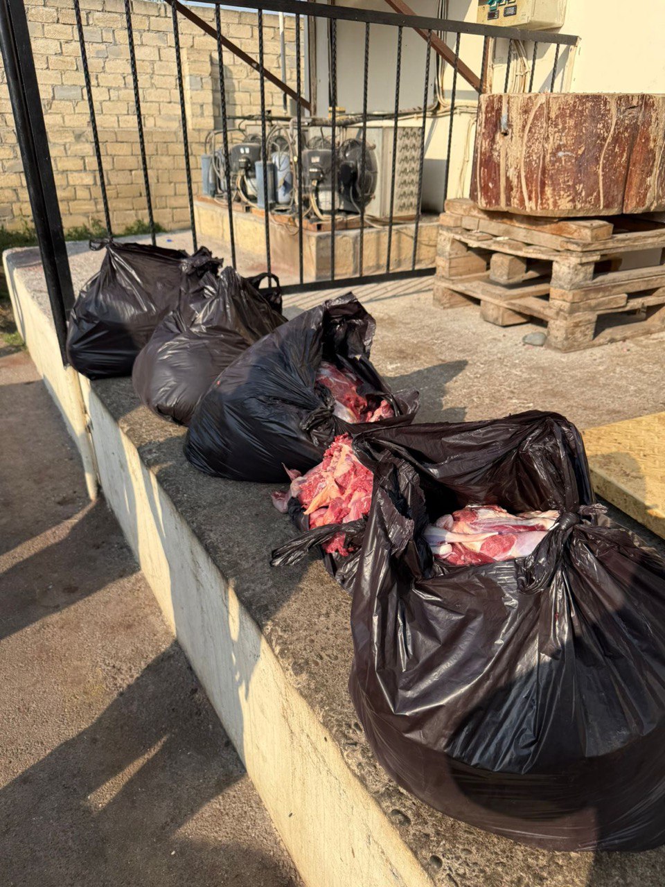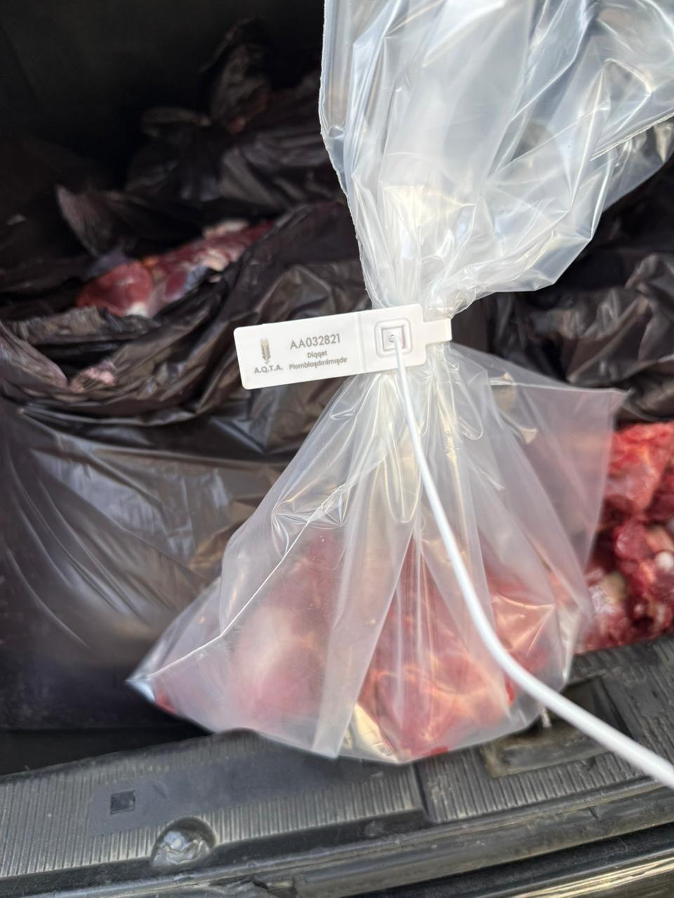 Bizim.Media xəbər verir ki, yoxlama zamanı mənşəyi məlum olmayan ətin kəsilərək sümükdən ayrıldığı və 99 CJ 158 dövlət qeydiyyat nişanlı “Mercedes” markalı avtomobilin saxlanc yerində antisanitar şəraitdə Hüseynov Natiq Vaqif oğlu tərəfindən mal əti adı altında satış məqsədilə Bakı şəhərinə aparıldığı müəyyən edilib.