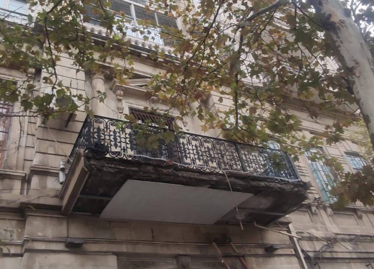 Bakı şəhəri Səbail rayonu Rəşid Behbudov küçəsi 12 ünvanında yerləşən 3320 inventar nömrəli yerli əhəmiyyətli memarlıq abidəsi olan binanın ikinci mərtəbəsində yerləşən mənzilin eyvanı təbii təsirlərdən uçub.