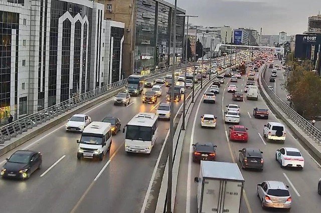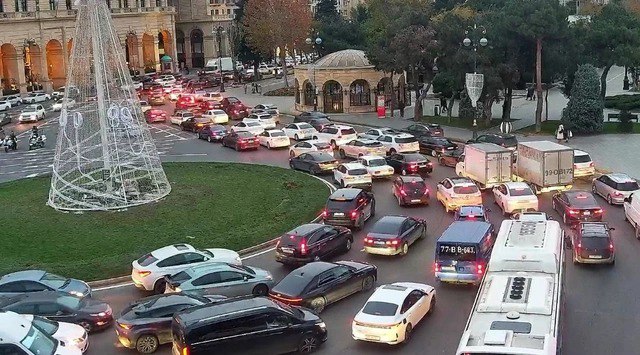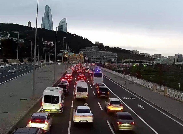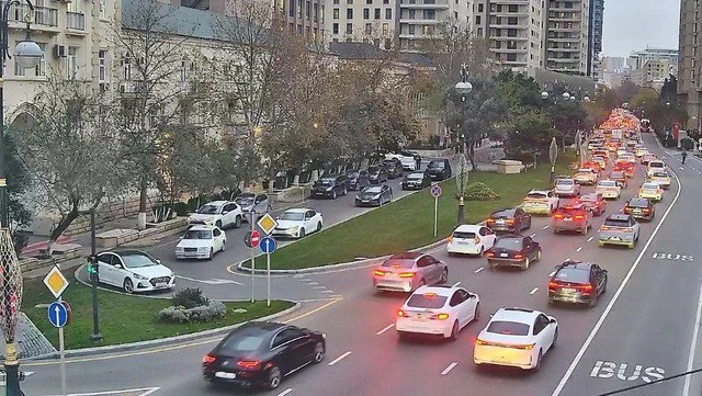 Bakının bir sıra yollarında nəqliyyatın sıxlığı müşahidə olunur.