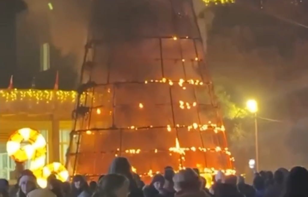 Bizim.Media xəbər verir ki, şəhər meydanında quraşdırılmış yolkanın işıqlarının təntənəli yandırılması mərasimində ağac qəfil alışıb.