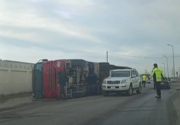 Sumqayıt şəhərində ağırtonnajlı yük maşını qəzaya uğrayıb.