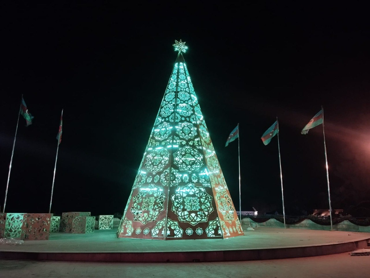 Dünya Azərbaycanlılarının Həmrəylik Günü və Yeni ilin gəlişi münasibəti ilə Gəncənin mərkəzi meydanı bəzədilib.