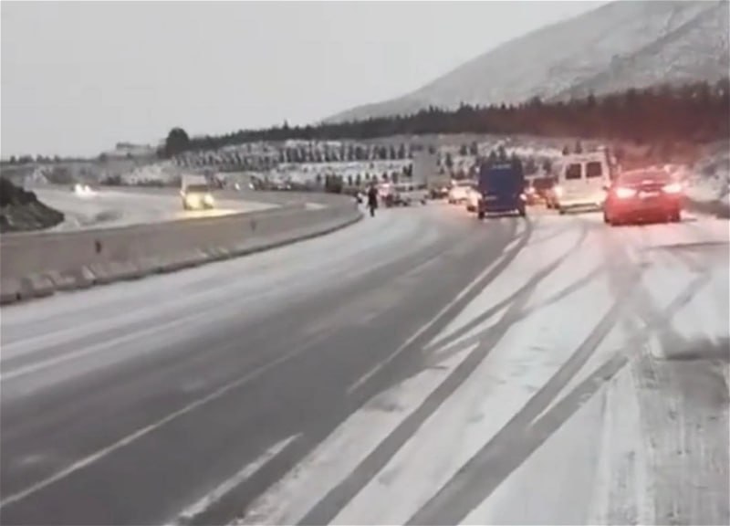 Bizim.Media xəbər verir ki, qəza nəticəsində yolun həmin hissəsində hərəkət müvəqqəti olaraq dayandırılıb.
