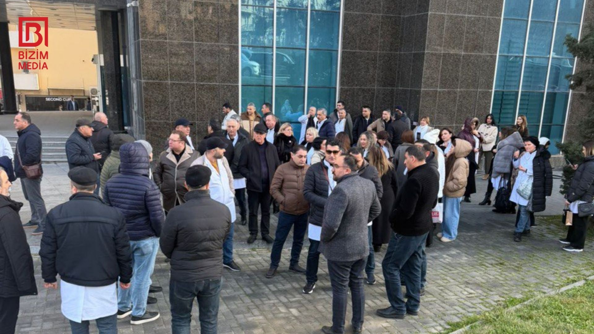 Xəbər verildiyi kimi bölgələrdəki TƏBİB tabeli tibb müəssisələrində fəaliyyət göstərən stomatoloqlar ixtisarlara etiraz edərək TƏBİB-in inzibati binasının qarşısına toplaşıblar.
