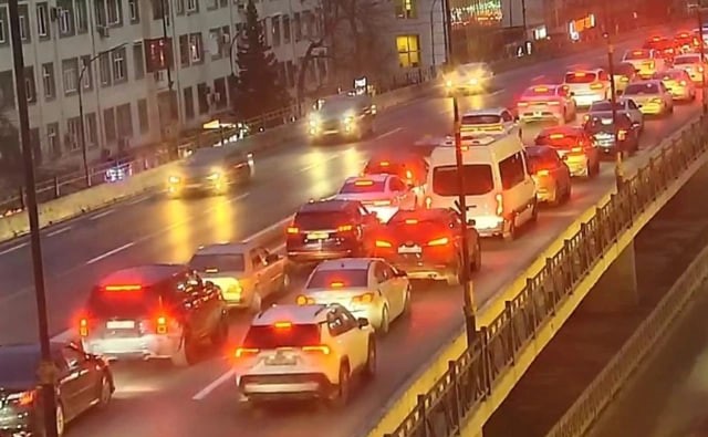 Bakının bir sıra yollarında nəqliyyatın sıxlığı müşahidə olunur.