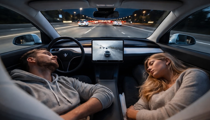 Bizim.Media xəbər verir ki, kadrlarda şosse ilə hərəkətdə olan Tesla markalı avtomobilin salonunda bir cütlüyün sakit şəkildə yatdığı görünür. Videonu paylaşanlar görüntüləri ironik tərzdə “əla avtomobil” şərhi ilə təqdim ediblər.