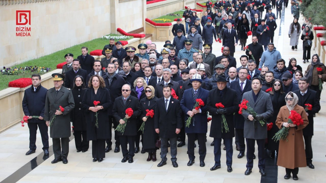 Şəhidlər xiyabanına gələnlər arasında sadə vətəndaşlarla yanaşı, həm də dövlət rəsmiləri var.