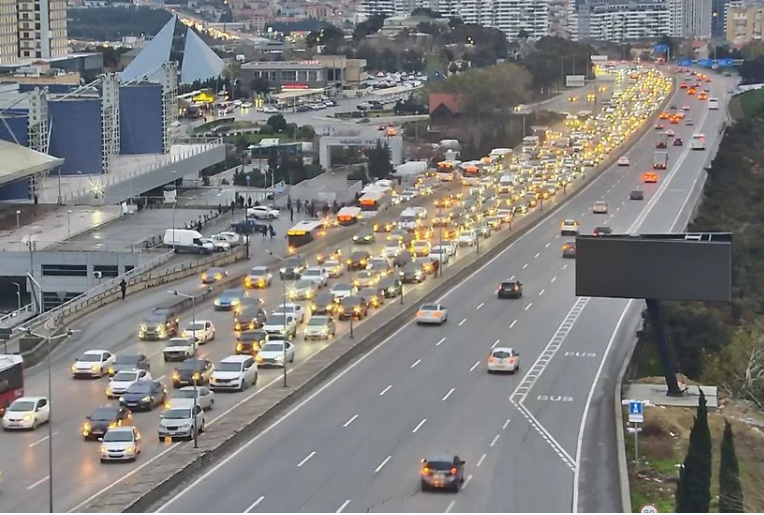 Paytaxt Bakının bir sıra yollarında nəqliyyatın sıxlığı müşahidə olunur.