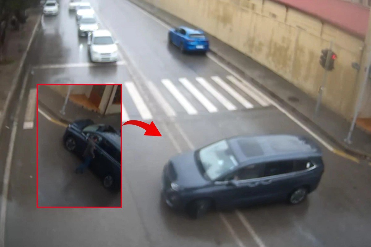 Bakıda sürücüdən qeyri-adi qayda pozuntusu: İşıqforun düyməsini sıxdı - ANBAAN VİDEO