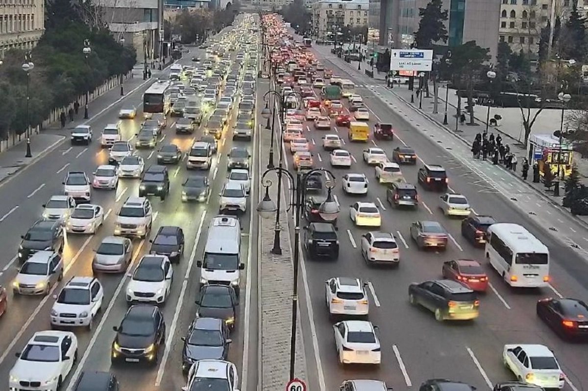 Bakının bir sıra yollarında nəqliyyatın sıxlığı müşahidə olunur.