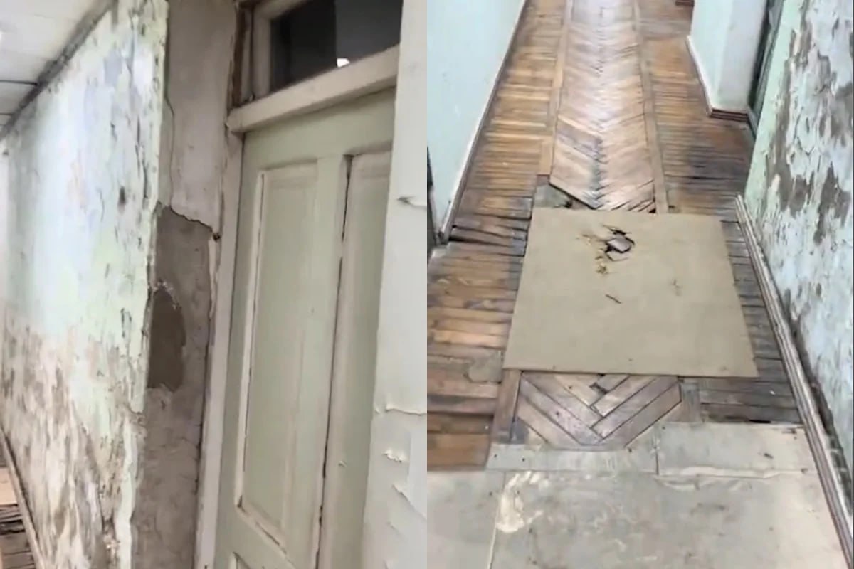 Bizim.Media xəbər verir ki, kadrlarda tibb müəssisəsinin divarlarında suvağın qopduğu, iri çatların əmələ gəldiyi və divar örtüyünün tamamilə dağıldığı görünür.