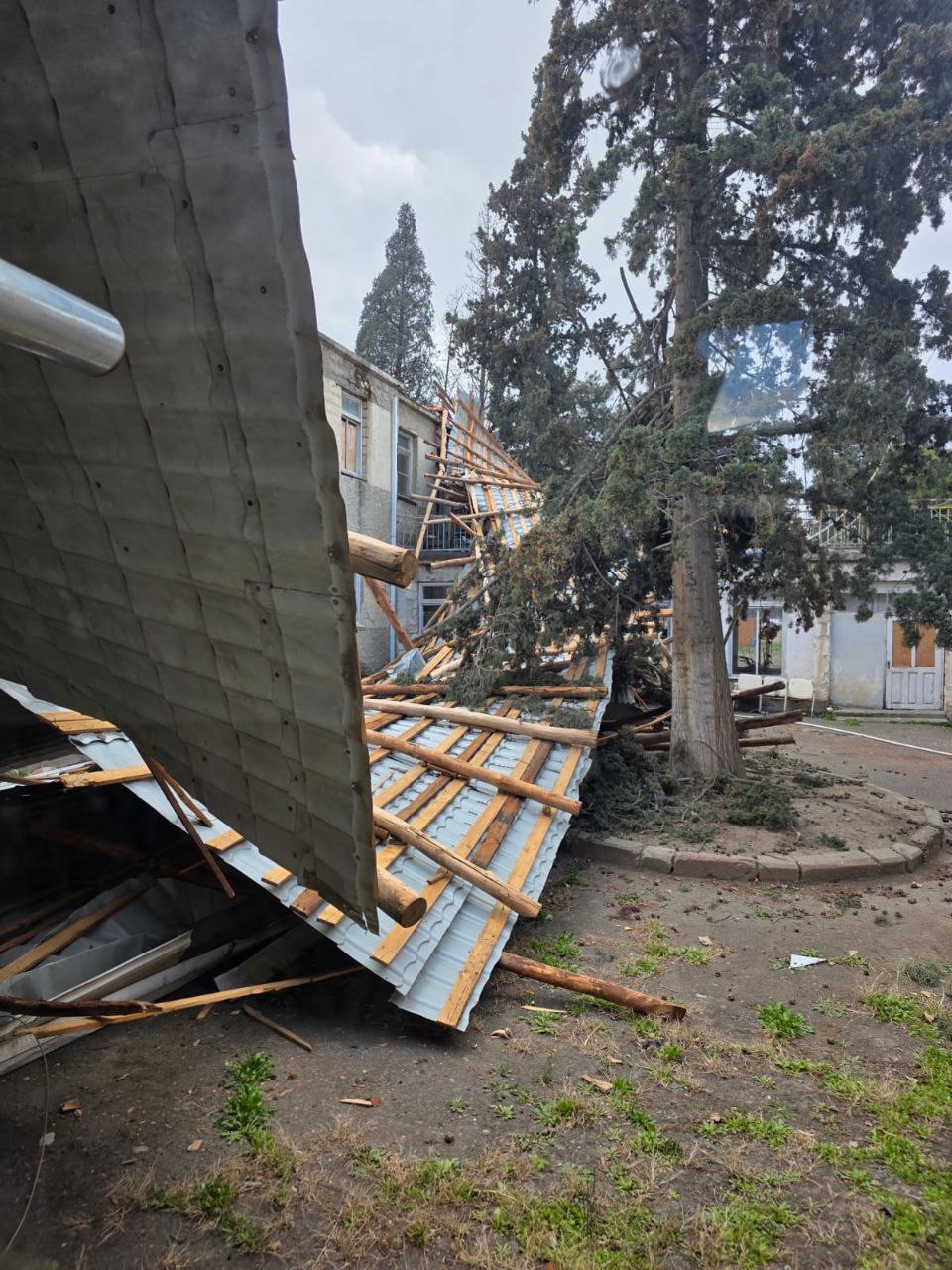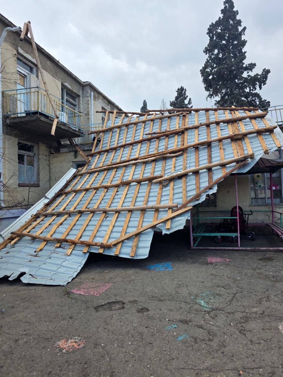 Güclü küləyin aşırdığı uşaq bağçasının dam örtüyü niyə bərpa edilmir? - AÇIQLAMA/FOTO