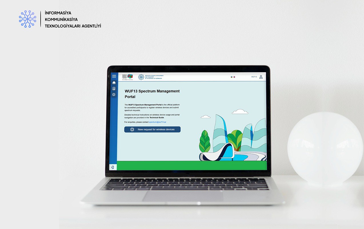 BMT-nin Ümumdünya Şəhərsalma Forumunun 13-cü sessiyası (WUF13) zamanı radiospektrin idarə olunmasını təmin etmək məqsədilə İnformasiya Kommunikasiya Texnologiyaları Agentliyinin (İKTA) WUF13 Azərbaycan Əməliyyat Şirkəti ilə əməkdaşlığı çərçivəsində xüsusi portal istifadəyə verilib.