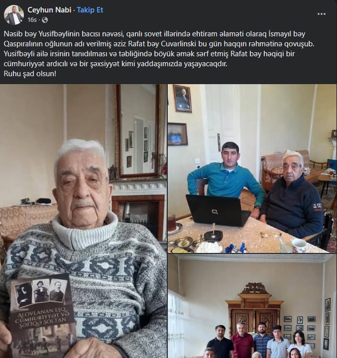 Tarixi şəxsiyyətin bacısı nəvəsi Rafat Cuvarlinski Gəncədə dünyasını dəyişib.