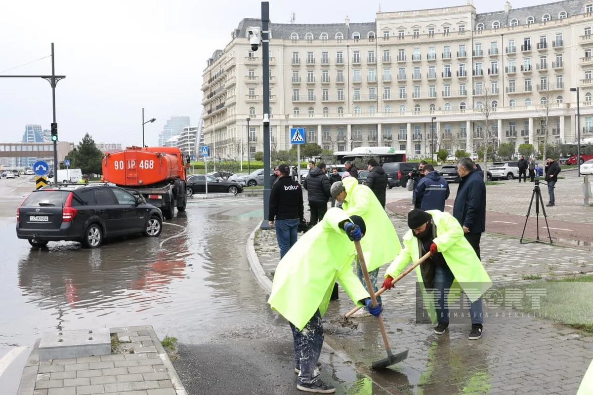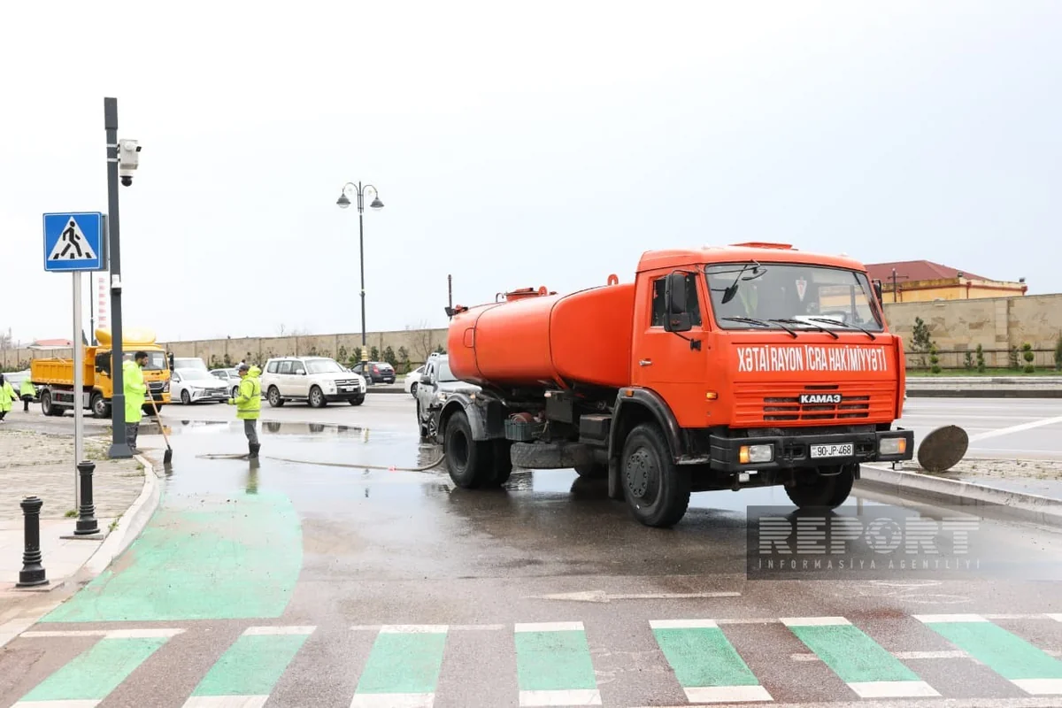 Ərazidə su nasosları, xüsusi texniki qurğular və ehtiyac olan yerlərə ağır texnikalar cəlb olunub.