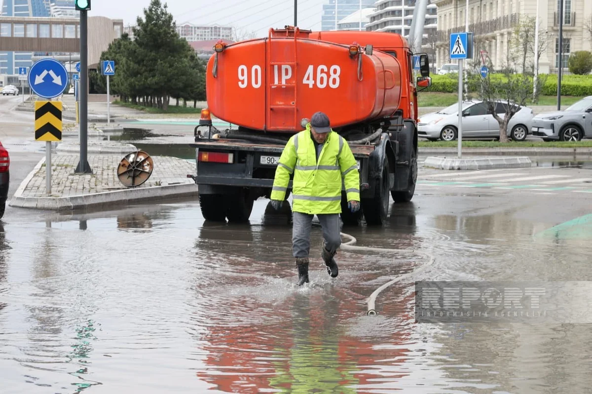 8 noyabr prospektində yağışın yaratdığı fəsadlar aradan qaldırılır – FOTO