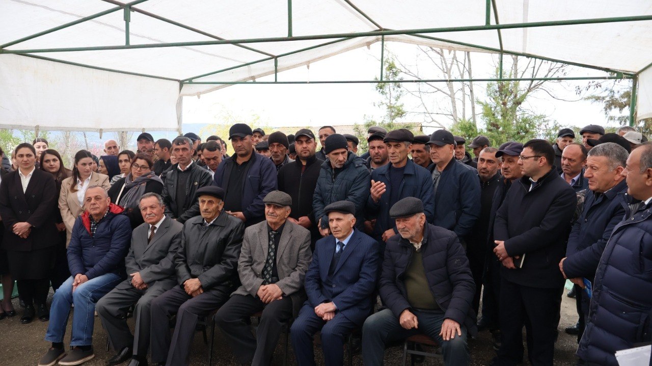 Səyyar qəbuldan əvvəl Mucuq kəndində şəhidlərin xatirə lövhəsi ziyarət edilib, önünə gül dəstələri düzülərək şəhidlərimizin xatirəsi yad edilib.