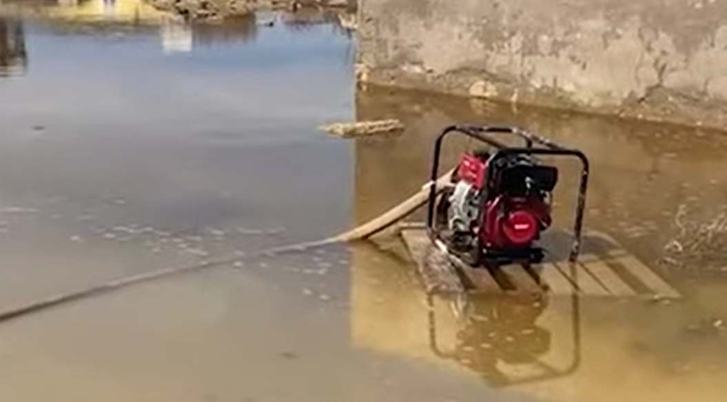 Xəzər rayonu, Buzovna qəsəbəsi, Nadir Quliyev küçəsi, döngə 2 ünvanında intensiv yağışlar nəticəsində toplanmış sular nasos vasitəsilə ərazidən kənarlaşdırılır.