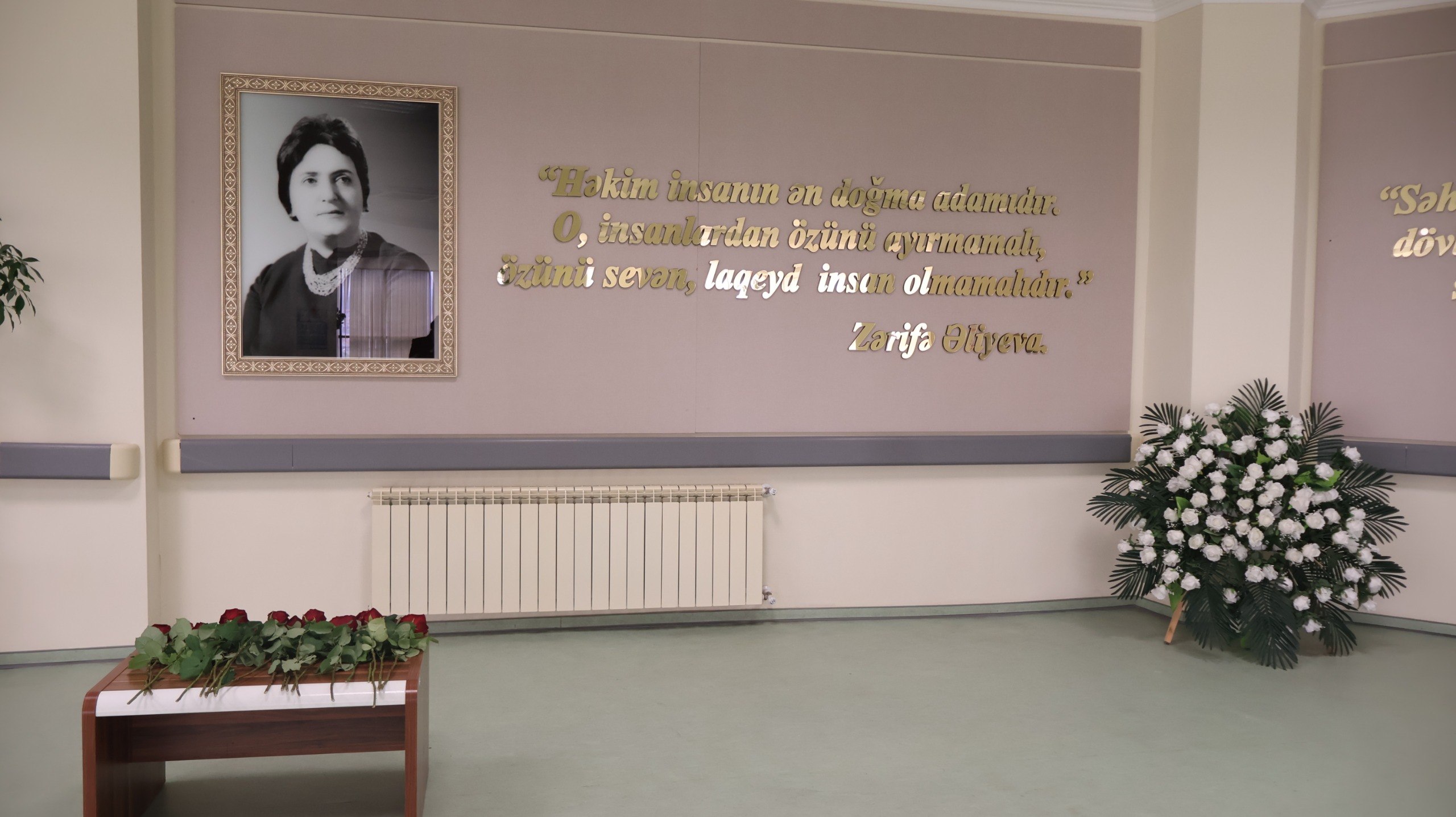 Əvvəlcə Ümummilli Lider Heydər Əliyevin və görkəmli oftalmoloq-alim Zərifə xanım Əliyevanın xatirəsinə həsr olunmuş stend önünə tər gül dəstələri düzülərək xatirələri yad edilib.