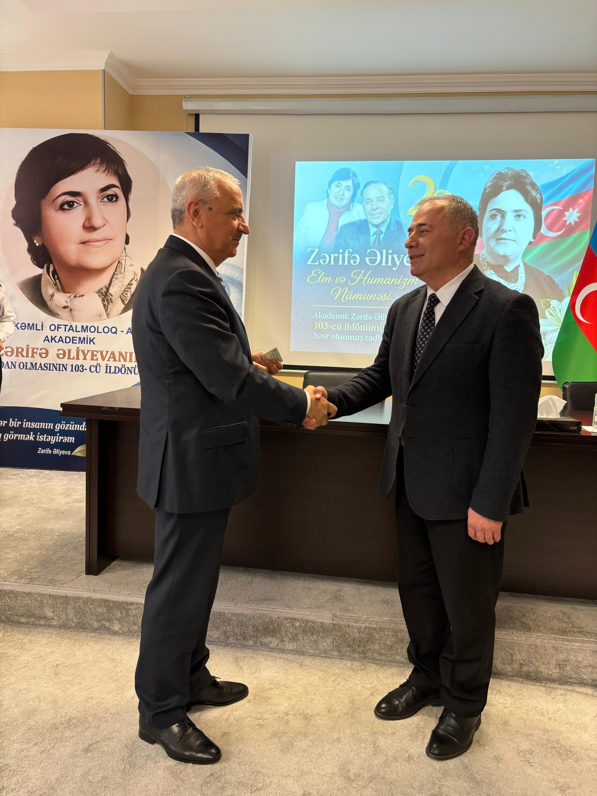 28 aprel 2026-cı il tarixində Qusar Rayon Mərkəzi Xəstəxanasında Azərbaycanın görkəmli oftalmoloq-alimi, əməkdar elm xadimi, tibb elmləri doktoru, professor, akademik Zərifə Əziz qızı Əliyevanın Azərbaycan səhiyyəsinin inkişafında, oftalmologiya elminin fundamental əsaslarının yaradılmasında və yüksəkixtisaslı tibbi kadrların hazırlanmasında misilsiz xidmətlərini yad etmək, onun zəngin elmi irsini təbliğ etmək məqsədilə görkəmli alimin anadan olmasının 103-cü ildönümünə həsr olunmuş “Zərifə Əliyeva: elm və humanizm nümunəsi” mövzusunda tədbir keçirilib.