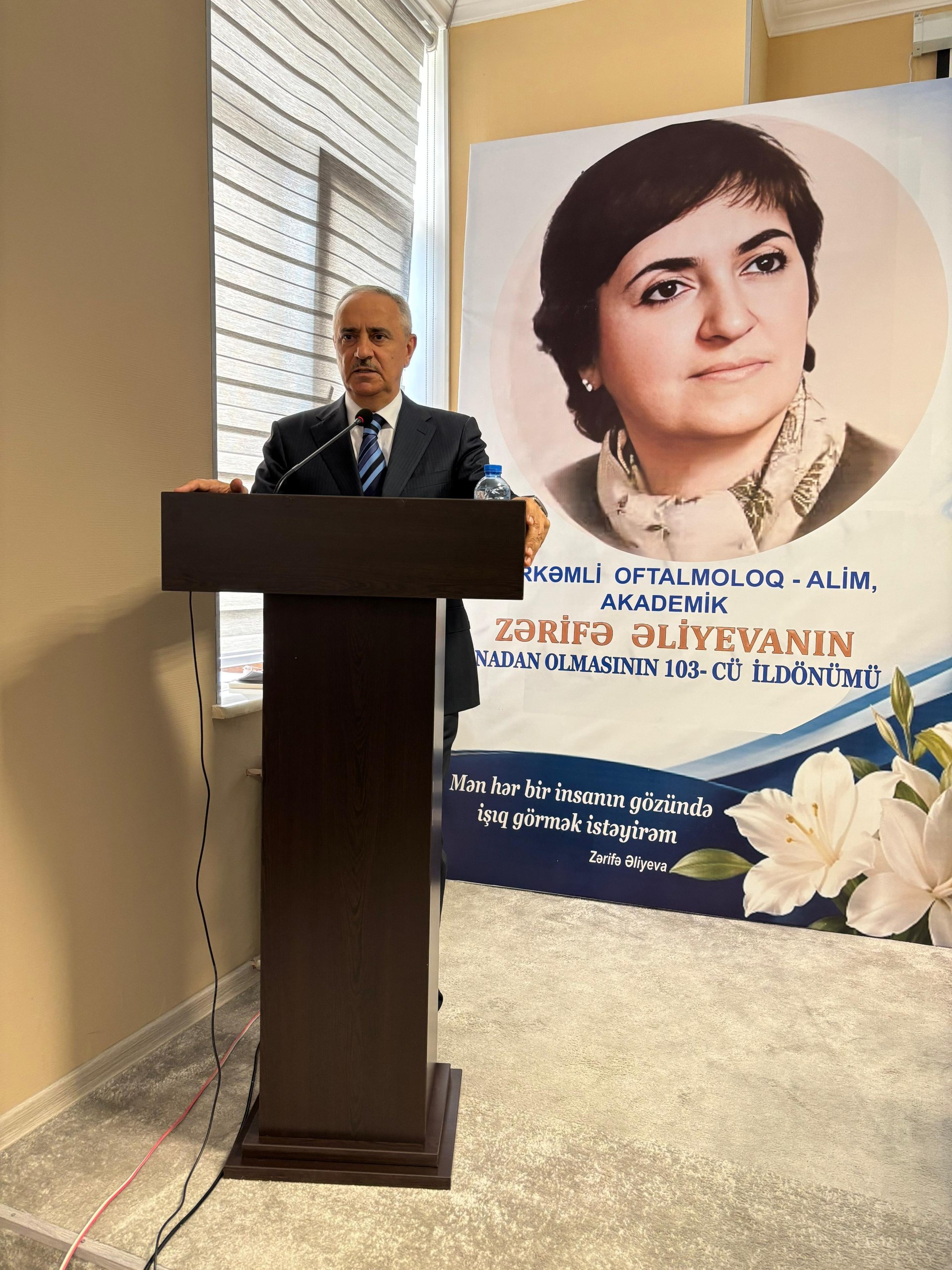 Qusar Rayon İcra Hakimiyyətinin başçısı Sahir Məmmədxanov görkəmli oftalmoloq-alim, akademik Zərifə Əliyevanın Azərbaycan tibb elminin inkişafındakı müstəsna xidmətlərindən, zəngin elmi-pedaqoji fəaliyyətindən bəhs edərək Zərifə xanım Əliyevanın təkcə alim deyil, həm də şəfqətli ana, vəfalı ömür-gün yoldaşı, yüksək mədəniyyətə və mənəviyyata malik ziyalı olduğunu diqqətə çatdırıb: