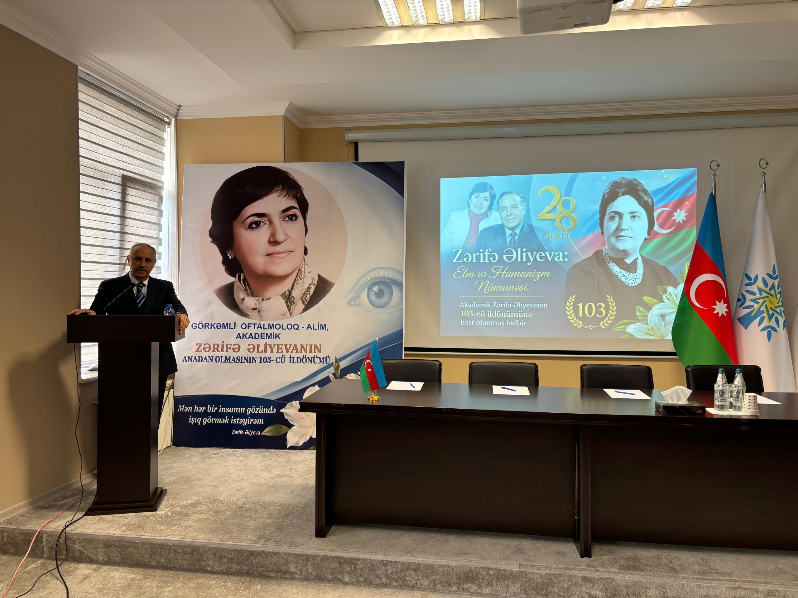Tədbiri giriş nitqi ilə Qusar Rayon Mərkəzi Xəstəxanasının direktoru İmran Qurbanov açaraq qeyd edib ki, akademik Zərifə Əliyeva XX əsr Azərbaycan tibb elminin ən parlaq simalarından biri olmaqla, oftalmologiya sahəsində bir sıra problemlərin elmi həllini vermiş, bu sahənin inkişafında yeni mərhələnin əsasını qoymuşdur.