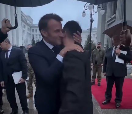 Fransa Prezidenti Emmanuel Makron Kiyevdə "İstəklilər koalisiyası" çərçivəsində görüşdən sonra Ukrayna lideri Volodimir Zelenskini qucaqlayıb və yanağından öpüb.