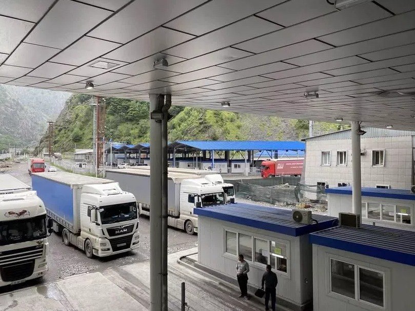 Ermənistanla Gürcüstan sərhədindəki nəzarət-buraxılış məntəqələrindən birində yük maşınlarının sürücüləri sərhədi xarici nömrə nişanlı yük maşınları üçün bağlayıblar.