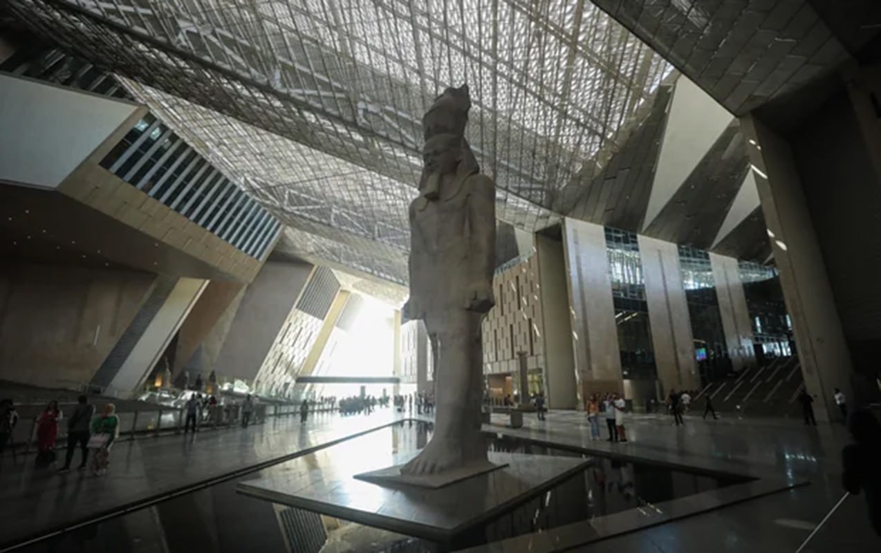 Muzeydə 50 mindən çox eksponat, o cümlədən II Ramzesin 3200 yaşlı, 83 ton ağırlığında olan heykəli və piramidaların tikintisində iştirak etdiyi deyilən Firon Xeopsun 4500 il tarixi olan qayığı nümayiş olunacaq.