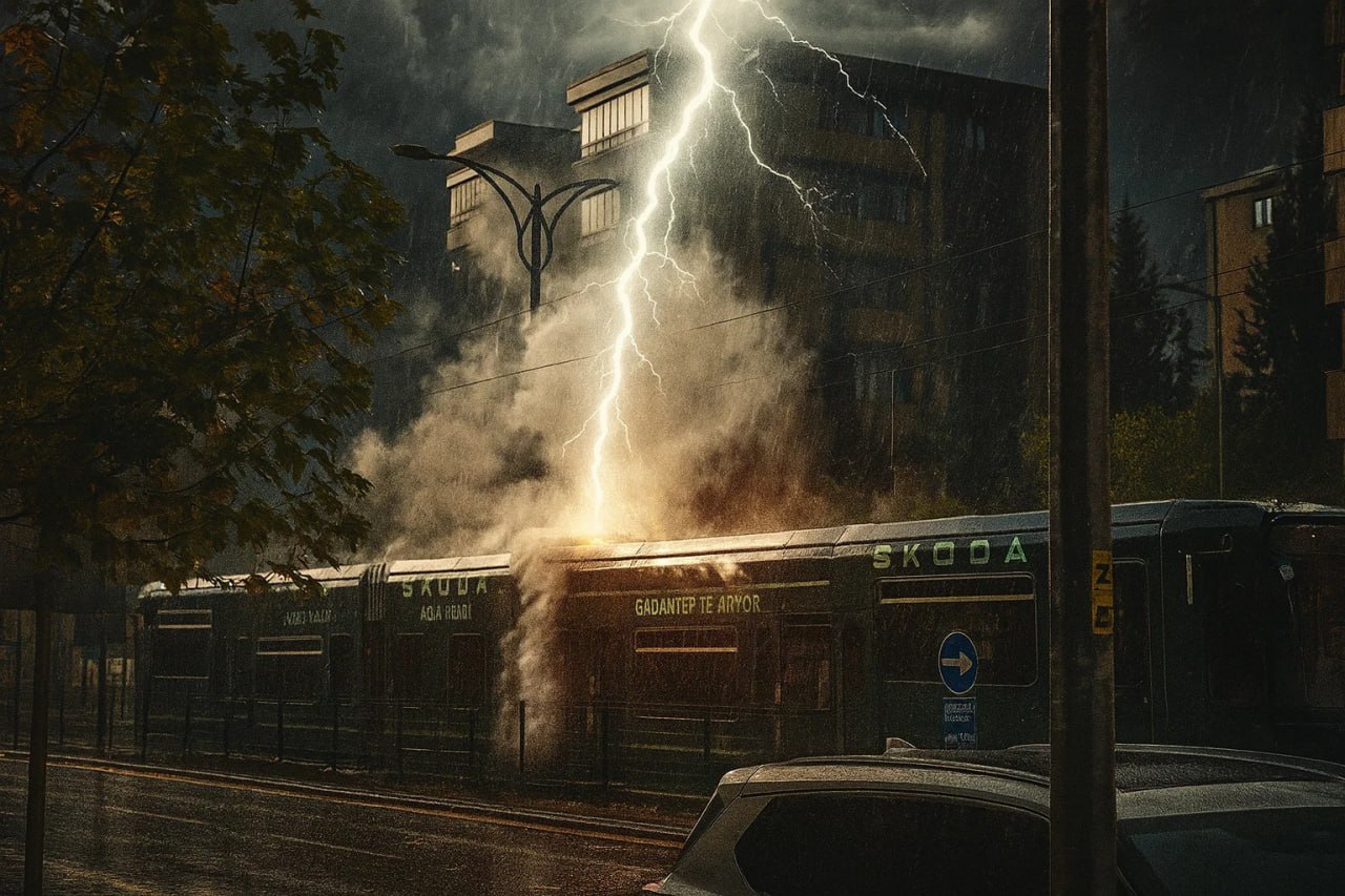 Türkiyənin Qaziantep şəhərində içində sərnişinlər olan və hərəkətdə olan tramvayı ildırım vurub.