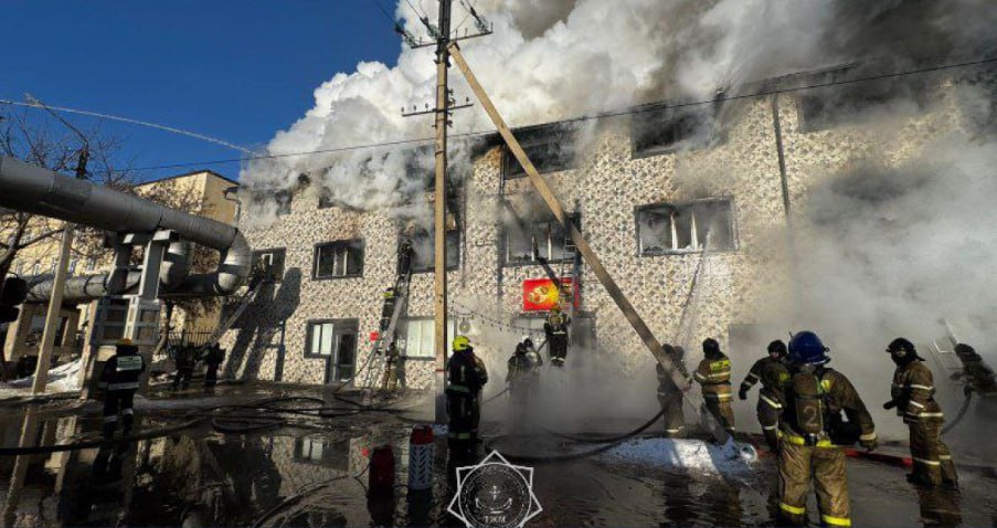 Bizim.Media Qazaxıstan Fövqəladə Hallar Nazirliyinə istinadən xəbər verir ki, yanğınsöndürənlər gələnə qədər yanğın ikinci və üçüncü mərtəbələri əhatə edib, dam isə qismən uçub.
