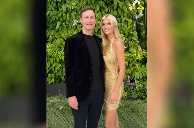 Fotolardan birində biznes-ledi qızılı mini-libas və brilyant üzükdə poz verib. O, saçlarını açıq və səliqəli formada düzərək makiyaj edib. Cared Kuşner isə qara futbolka, məxmər pencək və şalvarda görüntülənib.