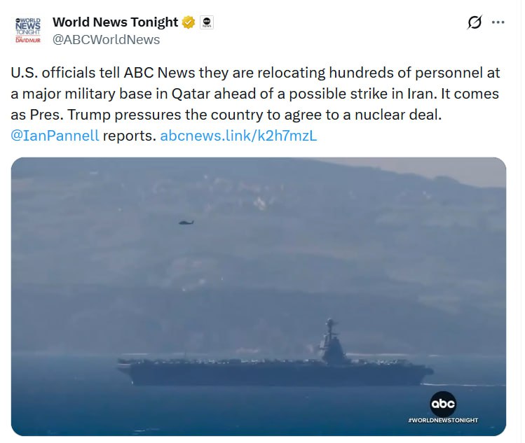 İrana mümkün zərbə fonunda Qətərdə yerləşən böyük hərbi bazadan yüzlərlə əməkdaş başqa ərazilərə köçürülüb.