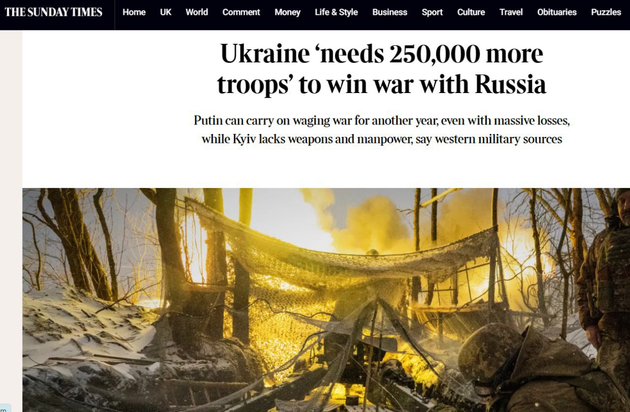 Ukraynanın müharibənin gedişini dəyişməsi üçün əlavə ən azı 250 min hərbçiyə ehtiyacı var.