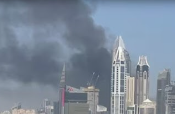 Dubayda silsilə partlayışlardan sonra insanlar Bürc Xəlifədən təxliyə edilir.