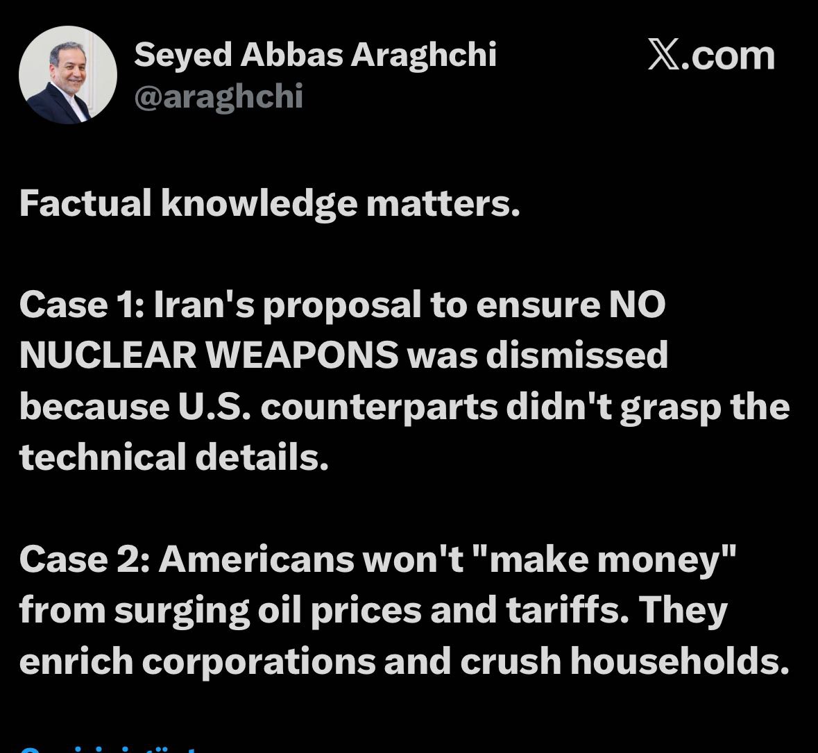 Bizim.Media xəbər verir ki, bunu İranın xarici işlər naziri Abbas Əraqçi sosial media hesabında yazıb.