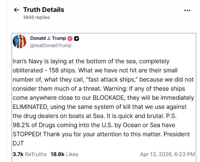 “Bu gəmilərdən hər hansı biri blokadamızı yarmağa çalışsa, dərhal məhv ediləcək – dənizdə narkotik qaçaqmalçılarına qarşı istifadə etdiyimiz eyni üsulla. Bu, sürətli və amansızdır”, - Tramp vurğulayıb.