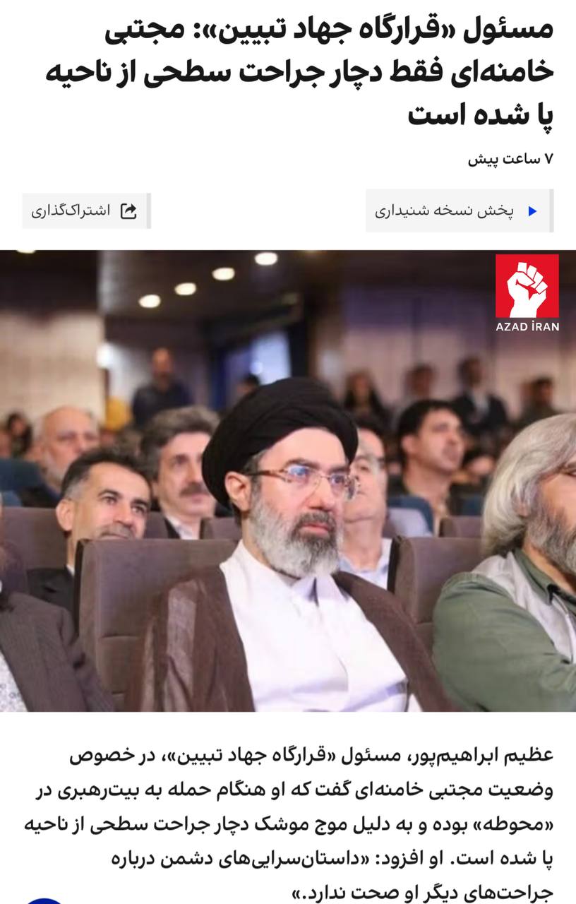 Əzim İbrahimpur bildirib ki, hadisə zamanı kompleks ərazisində olan Xameneyi ciddi xəsarət almayıb və onun sağlamlıq vəziyyəti stabildir.