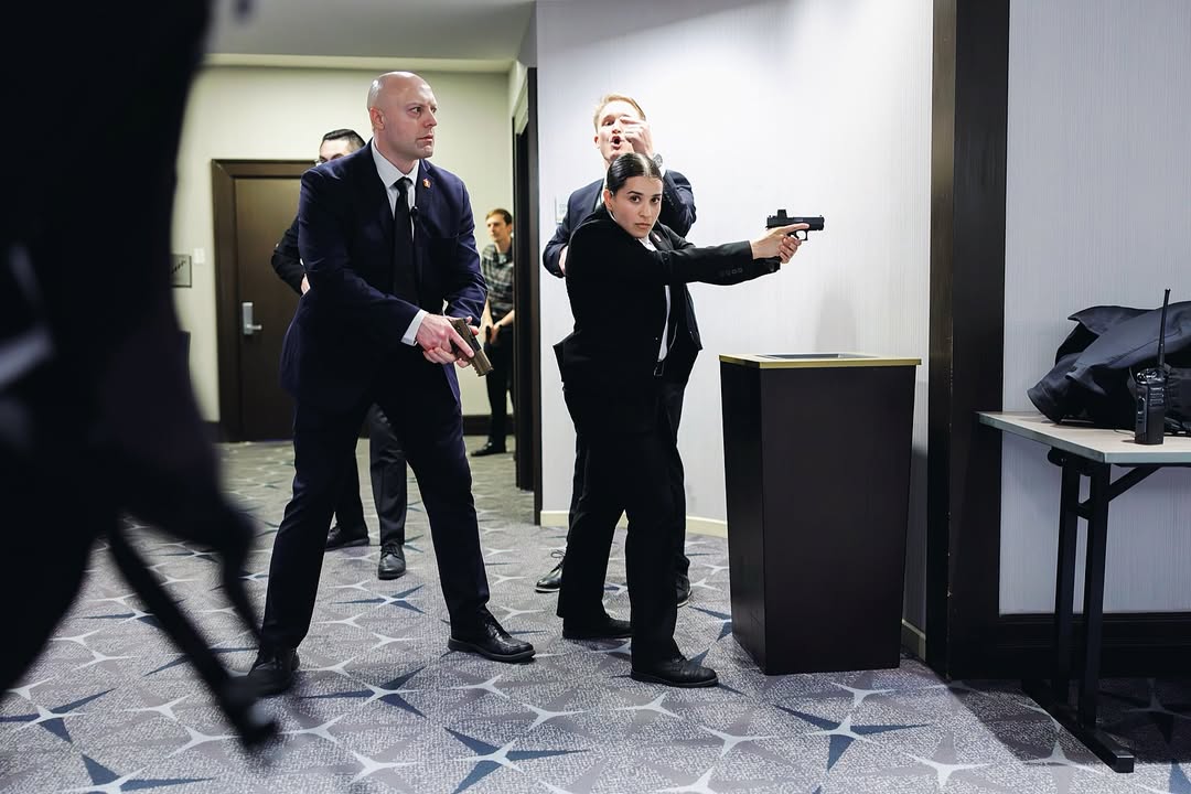 Vaşinqtonda Ağ Ev Müxbirləri Assosiasiyasının şam yeməyi zamanı baş verən atışmadan sonra çəkilən görüntülər yayılıb.