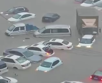 Sosial şəbəkələrdə yayılan görüntülərdə sel sularının küçələri basdığı, avtomobillərin suyun içində qaldığı və şəhər sakinlərinin çətinliklə hərəkət etdiyi görünür.
