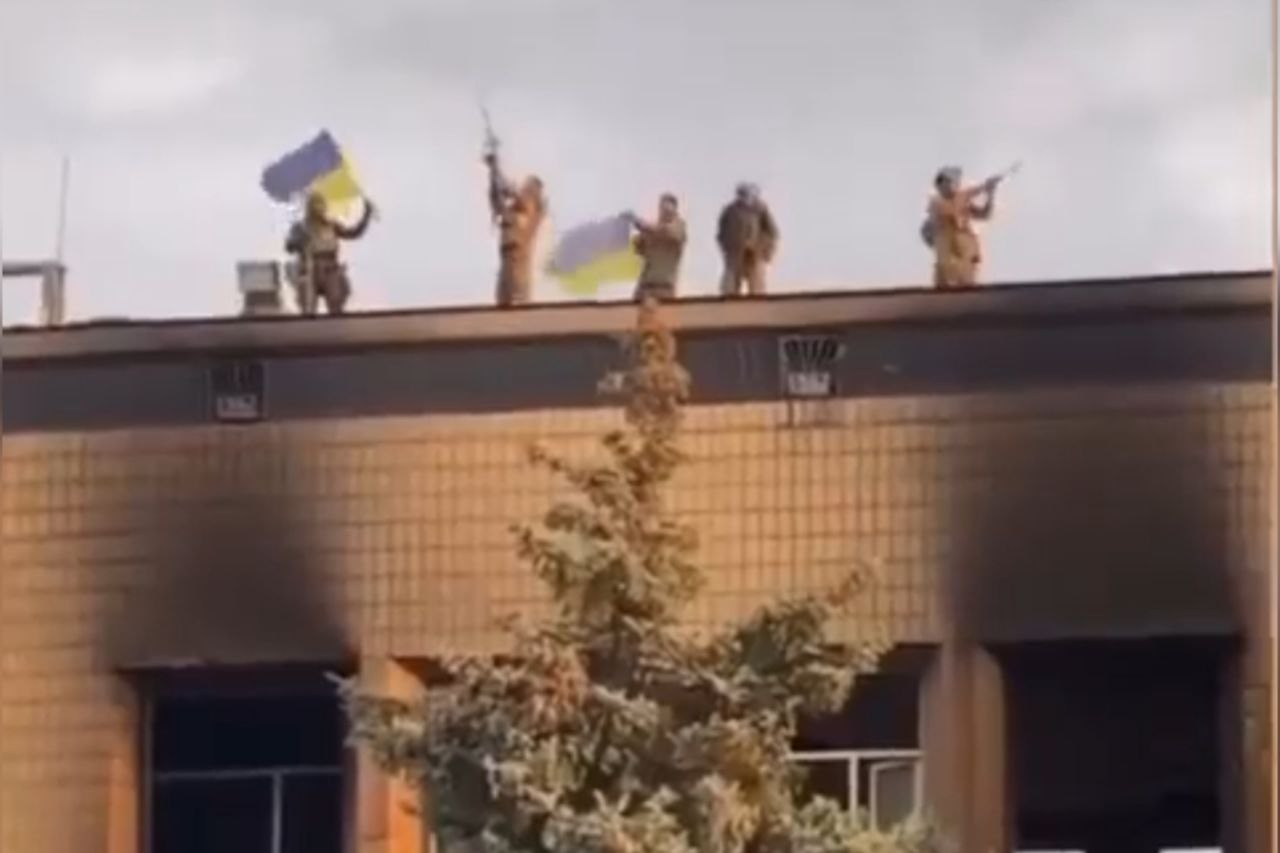 İşğaldan azad edilən İzyum şəhərində Ukrayna bayrağı qaldırılıb.