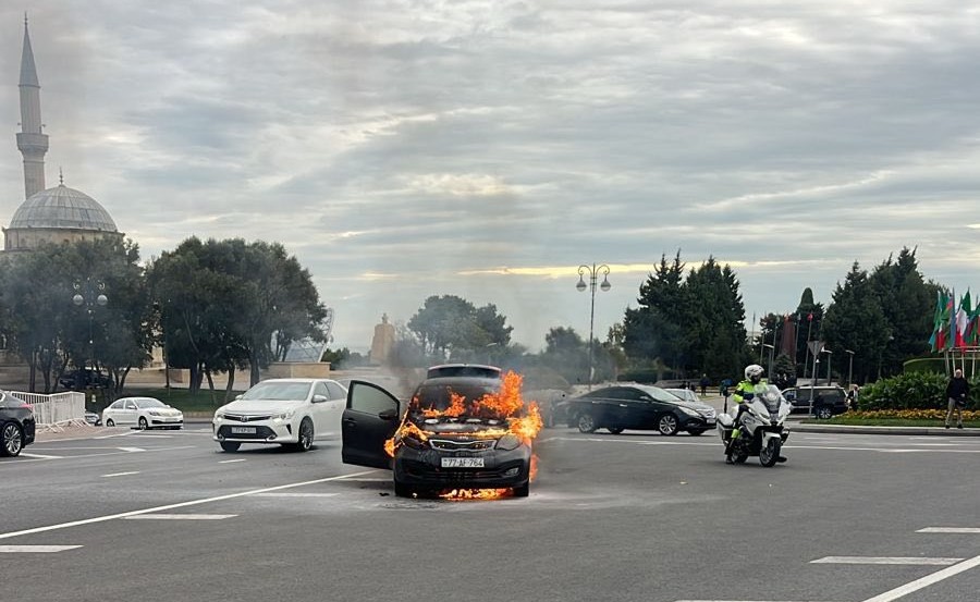 Bakıda Milli Məclisin qarşısında avtomobil yanıb.